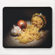 schwarzer Hintergrund mit Glas aus Nudeln und Knoblauch