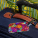 Wilde handgearbeitete abstrakte Kunst, farbenfrohe moderne Blumenkunst auf Gepäckanhängern. Helle, fröhliche Kunst, leicht zu erkennen von überall.