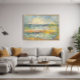 Umgestalten Sie Ihren Raum mit dieser atemberaubenden, impressionistisch anmutenden abstrakten Küstenlandschaft mit leuchtenden Gelben, Grüntönen und Blues. Diese lebendige Wandkunst vereint Energie und Ruhe in einem faszinierenden Design und erweckt die strahlende Schönheit der Natur. Dieses Kunstwerk ist perfekt für die moderne Wohngestaltung oder als Statement geeignet und verleiht Ihrem Interieur eine Touch von Eleganz und Lebendigkeit. Ideal für Kunstliebhaber, Liebhaber der Küstendekoration und alle, die die Schönheit des Meeres in ihre Zuhause bringen möchten.