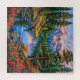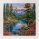 Die farbenfrohe Bergkulisse mit einem reflektierenden See, hohen Bäumen, Wildblumen und einem entfernten, sonnenaufgangsbeleuchteten Gipfel zeigt die Ruhe und lebendige Schönheit der Natur.