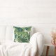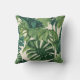 Dieses elegante Kissen besticht durch lebhafte helle und dunkelgrüne Palmen und Monstera-Blätter. Der Hintergrund ist hellblau und weiß