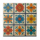 Ein charmantes Stück, das eine Touch floraler Eleganz in jeden Raum bringt. Jedes Blumenmotiv ist ein Set auf seinem eigenen Platz, gerahmt von einem markanten königsblauen Rahmen, der die lebhaften Farben der Blume schön betont. Die Ecken des blauen Rahmens sind mit feinen grünen Schnörkeln geschmückt, was den Charme der Kachel noch verstärkt. Die Kacheln sind weich, cremig und in lebhaften Farben gehalten, sodass ein echter Pop entsteht. Bringen Sie den Geist eines blühenden Gartens in Ihren Wohnraum mit dieser bezaubernden und authentischen dekorativen Kachel. Diese Blumenmosaikfliese zeichnet sich durch eine Blume aus, die in verschiedenen Farbtönen blüht. Ideal, um die Kulisse, die Wände des Badezimmers, die Kaminumgebung oder die Dekoration in einem einzigartigen Akzent zu gestalten.