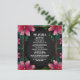 Dieses atemberaubende, blumengeschmückte Design zeichnet sich durch eine lebendige, symmetrische Rosa- und Violettblüte mit üppigem Grün aus. Der schwarze Hintergrund bildet einen perfekten Kontrast zu den lebhaften Farben und eignet sich ideal für Hochzeitsfeiern, rett-the-date-Karten oder andere Hochzeitskunststücke. Das luxuriöse Blumenwerk eignet sich perfekt für eine romantische und moderne Hochzeitsästhetik. Fügen Sie eine persönliche Nachricht oder Details in das Zentrum, um es wirklich einzigartig für Ihren besonderen Tag zu machen.