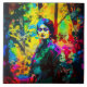 Eine Frau vor einem lebhaften, farbenfrohen Hintergrund