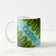 Stilvoll und kalt grün und aquamarine Kaffee-Tasse. Das aquamarine kann in eine beliebige Farbe geändert werden. Der Kaffeetext kann personalisiert sein, oder der Text kann entfernt werden.