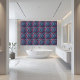 Diese Kachel weist ein auffälliges Geodmuster auf, mit konzentrischen Bändern aus lila, aquamarinen und weißen Streifen, die an natürliche Agatformationen erinnern. Das Design bietet ein modernes und raffiniertes Aussehen, das perfekt dazu geeignet ist, jedem Raum eine Touch von natürlicher Schönheit und lebendiger Farbe hinzuzufügen. Ideal für den Gebrauch in Badezimmern, Küchen oder als dekorative Akzente, bringt diese Kachel eine künstlerische und luxuriöse Atmosphäre in Ihre Wohngestaltung.