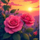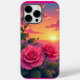 Ein lebhaftes Telefongehäuse mit rosa Rosen vor einem atemberaubenden Sonnenuntergang.