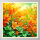 Erleben Sie die Wärme des Sommers mit diesem lebendigen Kunstdruck mit sonnigen Orangen- und Gelbblumen und üppigen grünen Blätter im nahen Detail. Perfekt für Ihren Stil (dieses Design aus KI). Bestellen Sie noch heute und Embrace the Joy of Shopping!