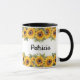 Personalisierte Vornamen trendige moderne Sonnenblumen blühen auf weißem Hintergrund in zwei Tönen Tasse. Diese moderne Tasse ist ein perfektes Geburtstagsgeschenk oder Geschenk für jeden besondere Anlass. Stellen Sie die Tasse mit einem Namen für eine eindeutige Touch oder als Leckerei selbst ein.