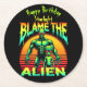 Lebhafte Sonnenuntergangsrahmen Grüne Alien Runder Pappuntersetzer