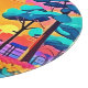 Ein faszinierendes Beispiel für ein lebendiges Stadtbild, das im warmen Glühen einer untergehenden Sonne, gerahmt von üppiger Vegetation und einem kurvenreichen Weg (Dieses Design aus KI) liegt. Bestellen Sie noch heute und Embrace the Joy of Shopping!