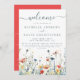 Dieses Design zeichnet sich durch eine lebendige Wildblumen in Rot-, Gelb-, Grün-, aquamarin- und Blautönen aus. Ideal für lässige Hochzeiten.
