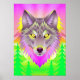 Lebhafte Wolf-Illustration mit Abstrakten Bäumen Poster