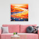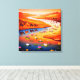 Mit diesem atemberaubenden Gemälde entdecken Sie eine Welt voller Farben und Gelassenheit. Dieses Kunstwerk vereint die atemberaubende Schönheit einer Wüstenoase bei Sonnenuntergang, wo ein kurvenreicher Fluss mit bunten Lotus-Blume einen ruhigen Zufluchtsort bietet. Eine friedliche Karawane von Kamelen geht sich entlang des Wassers, ihre Reflektionen schaffen eine symmetrische und verträumte Wirkung. Die reichhaltige Palette von feurigen Orangen und Rottönen der Wüstenhügel kontrastiert wunderbar mit der tiefen Blues des Wassers, während die hellen rosa, gelben und weißen Lotus-Blume einen magischen Brennpunkt darstellen. Dieses Stück ist perfekt, um jedem Zimmer ein Gefühl von Ruhe, Wunder und einen Pop von brillanter Farbe zu verleihen.