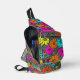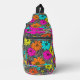 Dieser Slingsack ist ein Schauspiel, mit fetten Blumengemälden in Orange-, Rosa-, Blau- und Gelbtönen, die im Kontrast zu einem schwarz-weißen Zebrastreifen stehen. Es handelt sich um eine großartige lässig-Tage-Tasche, die sehr gut getippt und funktioniert, mit einer Reißverschlusstasche vorne und einem verstellbaren Gurt für den Komfort.