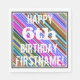 Dieses lustige Geburtstagsthema der Papierserviette enthält eine Nachricht wie "HAPPY 6th BIRTHDAY, FIRSTNAME!", in der der Name personalisiert sein kann. Der Hintergrund weist ein lebendiges, buntes Streifen-Muster auf. Der Nachrichtentext ist weiß und weist ein gestörtes Aussehen auf. Napkins wie diese könnten vielleicht auf einer Geburtstagsparty für jemanden verwendet werden, der seinen sechsten Geburtstag feiert. [~Z0000270]
