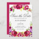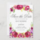 Schöne, leuchtend rosa Blume zieren diese romantische, moderne Save the Date Karte für eine Sommernachmittagszeremonie in einem Garten. Die wunderschöne kursive Schrift ist gerahmt von einer wunderschönen, lebendigen Fuchsia und einem lila Blumenstrauß von Rose.