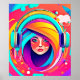 Mit dieser emotionalen abstrakten Kunst tauchen Sie ein in pulsierende Musik: Eine farbenfrohe Frau mit Kopfhörern, umgeben von wirbelnder Energie, erweckt die Freude an Klängen und kreativem Ausdruck (Dieses Design aus KI). Bestellen Sie noch heute und Embrace the Joy of Shopping!