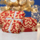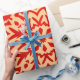 Ein gewagtes und auffälliges Muster mit einem dynamischen Bruch roter Blumenmotive vor einem warmen, hellbraunen Hintergrund. Ideal, um Geschenkverpackungen, Kunsthandwerksprojekte oder festliche Dekorationen mit einer auffälligen Touch zu versehen.