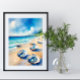 Erleben Sie die erfrischende Schönheit des Ozeans mit diesem lebendigen Strandposter, das atemberaubende Muscheln entlang einer kristallklaren Küste aufweist. Blaue, goldene Sandbänke und ein ruhiger Himmel sorgen für eine Atmosphäre der Ruhe und des Naturwunders - perfekt für Zuhause, Hütten am Strand oder alle Zimmer, die sich in der Ruhe am Meer entspannen können. Dieses farbenprächtige und lebendige Kunstwerk an der Küste ist ein schönes Statement für Ozeanliebhaber und Strandträumer gleichermaßen.