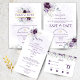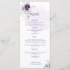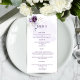 Ein atemberaubendes, blumengeschmücktes Hochzeitsmenü. Dieses lebhafte Blumenmenü bietet königliche lila Rose, hervorgehoben durch weiche Lila und weiße Rosen, eingebettet in einen grünen Hintergrund mit einer Touch Goldakzent.