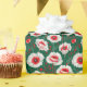 Lebhaftes Blumenmuster dominiert von großen Blume mit weißem Mohn mit auffallenden roten Mittelpunkten. Die Blume sind Set vor einem reichen grünen Hintergrund, der ihre Helligkeit erhöht. Neben den Mohnblumen gibt es zarte grüne Stiele und kleinere rote Blumenakzente, die ein lebendiges und optisch ansprechendes Design schaffen. Die Gesamtkomposition ist kühn und farbenfroh, was eine frische und natürliche Atmosphäre hervorruft.