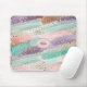 Dieses abstrakte Muster-Mousepad zeigt dynamische diagonale Pinselstriche in einer lebhaften Mischung aus Pastellfarben und hellen Farben - rosa, aquamarin, lila, blau und weiß - in schimmernden Texturen. Glitzer- und Bronzemakzente bringen Glanz und Kontrast, während verstreute, konfetti-ähnliche Punkte eine festliche Touch hinzufügen. Dieses Design mit seinem mutigen, bewegungsbezogenen Ambiente ist perfekt für unterhaltsame, kreative und moderne Ästhetik.