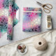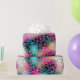 Eine lebhafte Kaskade aus rosa, aquamarinen, lila und blauen Blätter glänzt vor tiefem Hintergrund und schafft einen auffallenden geometrischen Rhythmus. Inspiriert durch die wechselnden Töne der Natur, verbindet dieses Design moderne Lebensfreude mit festlichem Charme. Ideal für Geburtstage, Feiern oder kreatives Kunsthandwerk.