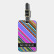 Dieses Gepäckanhänger-Design zeichnet sich durch ein lebendiges und auffälliges gestreiftes Muster aus, das eine Vielzahl von Farben aufweist. Es enthält auch einen personalisierten Namen auf der Vorderseite und personalisierte Kontaktinformationen auf der Rückseite.