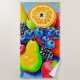 Genießen Sie die lebendige Frische dieses Gemäldes, das noch lebendig ist und eine bunte Fülle von saftigen Äpfeln, Birnen, Beeren und Orangen zeigt (dieses Design aus KI). Bestellen Sie noch heute und Embrace the Joy of Shopping!