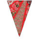 Lebhaftes rotes Gewebe, mit viel Blumen und Wimpelkette