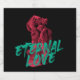 Modernes urbanes, trendiges Grafikdesign der "Ewigen Liebe" mit historischer Skulpturenfotografie und Pinselstrichtypografie. Die Frau küsst die Statue des Mannes vor dem Altar des Vaterlandes in Rom. Es werden kräftige Farben wie Rosa, Rot und Grün verwendet. Kühnes, modernes Design.