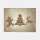 Elegante und köstliche Weihnachtsbilder: dekorierter Lebkuchenweizenbaum, Lebkuchenmann und Lebkuchenhirsch mit goldenen Sternen auf braunem Bukett.