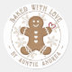 Hier ist ein fröhlicher kleiner Lebkuchenmann mit kleinen Herzknöpfen auf seinem Shirt und einem warmen roten Herz in seiner Hand vor einem Hintergrund von süßen, eisigen Lebkuchenschneeflocken. Genießen Sie die Jahreszeit! Fügen Sie Ihre eigene Nachricht hinzu oder personalisieren Sie mit Ihrem Namen und Ihrer Adresse, um als Umschlag Aufkleber zu verwenden! Ideal für Bäcker oder als kleines Geschenk für Ihren Lieblings-Bäcker oder für alle, die Lieben Lebkuchen!