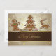 Elegante und köstliche Weihnachtsbilder: dekorierter Lebkuchenweizenbaum, Lebkuchenmann und Lebkuchenhirsch mit goldenen Sternen auf braunem Bukett.