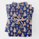 Dieses blaue Weihnachtsverpackungspapier-Set hat drei verschiedene Lebkuchenmuster. Sie haben Winterbäume mit Schneeflocken, elegante Wirbel und Backkochen mit hübschen Schneeflockendesigns. Die perfekte Weihnachtsverpackung für jemanden, der Kekse Liebe. Sie können die Muster größer oder kleiner machen.