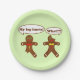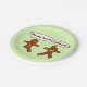 " Mein Bein verletzt" - "was?" Lustige Lebkuchenmänner in der Parodie, Spoof, zu den Häschenkaninchen, der "sagt, mein Hintern verletzt". Niedlicher grafischer Entwurf der Weihnachtslebkuchenmänner. Mit einem grünen Hintergrund, der zu allen möglichen Farben geändert werden kann.