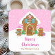 Dieser niedliche und festliche Untersetzer verfügt über ein niedliches Lebkuchenhaus, das mit rosa und grünen Süßigkeiten dekoriert ist. Daneben sind bezaubernde Lebkuchenmänner mit Geschenken, in Weihnachtsmannmützen und Schal gekleidet. Im Hintergrund ist ein hellrosa Winterhimmel mit eleganten fallenden Schneeflocken. Der Text verbindet dekorative und serifenlose Schriftart für einen stilvollen und modernen Look. Dies ist ideal für ein Weihnachtsgebäck mit Party.