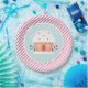 Gingerbread House Decorating Party Paper Teller mit niedlichem Lebkuchenhaus und Zuckerrohrstreifen.