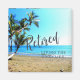 "Lebt das gute Leben!" Tropische Landschaft mit Sandstrand und Palmen.