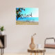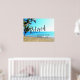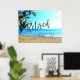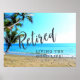 "Lebt das gute Leben!" Tropische Landschaft mit Sandstrand und Palmen.