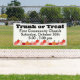 Mit diesem aufschlussreichen Outdoor-Banner können Sie Ihre Kirchenfeier oder Christliche Schulveranstaltungen zum Thema Herbst, Erntefestspiele, Trunk oder Leckerei Halloween fördern. Mit einem Gewicht von 2,5' x 6' ist dieses Banner mit Metallknetmaschinen für eine einfache Installation ausgestattet und eignet sich somit hervorragend für die Außendarstellung. Die niedliche, familienfreundliche Kürbis in den Herbsttönen Orange, Terrakotta und Braun am unteren Rand. Der fett formatierte, Vintag inspiriert Blocktext lautet "Trunk oder Leckerei", zusammen mit dem Namen, dem Veranstaltungsdatum und der Uhrzeit Ihres Unternehmens in großen, leicht lesbaren Buchstaben. Dieses Banner eignet sich perfekt für jeden Herbst und eignet sich hervorragend für Kirchen, Christliche Schulen oder Gemeinschaftsgruppen, die einen Trunk oder eine Leckerei, Herbstfestival oder Erntefestspiele veranstalten. Mit diesem wunderschön gestalteten und individuell gestalteten Banner für Herbstveranstaltungen können Sie Ihre Community für die Saison begeistern