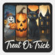 "Leckerei oder Trick" Halloween-Pinselstrichkatze Quadratischer Aufkleber