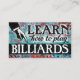 Art coloré Apprendre à jouer cartes de visite Billiards en turquoise, aqua, rouge, jaune. Des billards entraînent des cartes de visite.