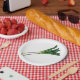 Ein frisch aussehendes, leeres Gemüse. Dieses Design wirkt auf diese Paper-Teller sehr effektiv