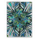 Eine abstrakte Mandalahand gezeichnet mit Feder in einem auffallenden Sternexplosion- und Blumenmuster. Gefärbt mit Bleistift in den Farben des Blaus und des Grüns.