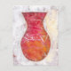 Eine rote orangefarbene Vase über einem weiß gewaschenen, strukturierten Hintergrund. Acryl und Collage auf Papier.