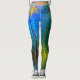 Leggings Bleu Vert Jaune Abstrait Grille Motif Moderne