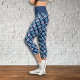 Sur cette paire de leggings capri, une série de rayures de peinture bleu et blanc libre sont placées dans un motif alternatif sur un arrière - plan bleu royal plus foncé. Un motif moderne qui deviendra intemporel.