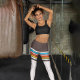Arrière - plan vintage classique avec lignes orange, jaune, bleu, blanc et arrière - plan marron qui rend votre entraînement plus étonnant. Essayez ces leggings Capri et laissez vos commentaires.